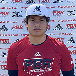 Power: 89 mph exit velocity from the tee. Showed feel to hit in game action , barreled two balls, stayed back on an offspeed pitch driving it to the right center gap for a double, better than average bat speed with strength.