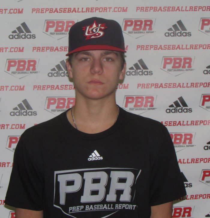 2/19/18- 6-foot-1, 155 pound two-way player ran a 4.21 H-1B. Tall slightly open stance at the plate. Leg kick trigger. Loose whippy linear barrel path during round of BP. Hard contact to pull side during round of BP. Behind the plate threw to 2nd in the 2.12-2.63 range. Sporadic accuracy. Off center set up, high hips, athletic feet when blocking, receives the ball out front, strong hands. On the mound topped out at 76 mph with his fastball. Short arm path, occasional cut action, mostly straight. 11/5 SL is solid when out front, lands easy for strikes. CH has fade, straight action, lacks cut or sink, tends to drag arm slightly. Strong follow for the 2021 class.