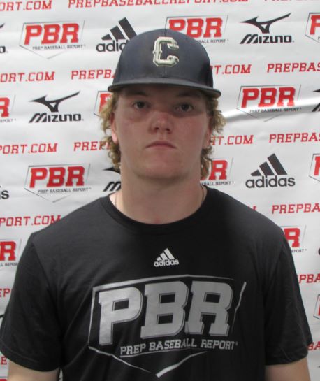 6-foot-2, 210 pound first basemen ran a 4.59 home to first. Open stance, short stride trigger, slightly uphill barrel path, aggressive swing. Showed consistent hard contact during round of BP. Posted an 87 mph exit velocity off a tee. Playable actions for first base, hands and feet work, compact high ¾ arm slot.