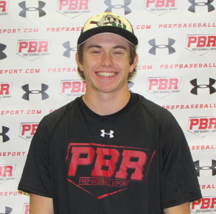 10/30/16- 6-foot-2, 170-pound outfielder/catcher ran a 5.02 40 yard sprint. At the plate, wide square stance, leg kick triggers controlled line drive swing path, lets the ball get deep, line drive/ground ball contact during round of BP. Posted an exit velocity of 75 mph off a tee. Aggressive athletic actions in the outfield, fields the ball out front with a clean transfer to mid ¾ arm slot. Topped out at 71 mph to the catcher.