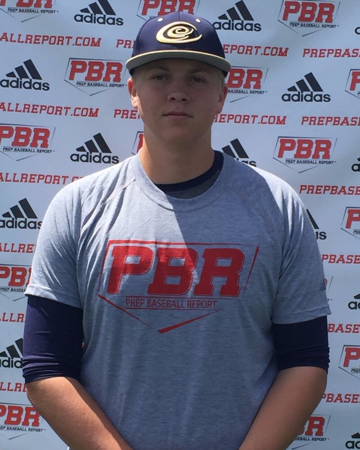 5/22/16- 6-foot-4, 205-pound two-way player that ran a 8.01 60 yard sprint. Square stance, leg kick trigger, slight arm bar. Compact line drive swing plane. Posted an exit velocity of 81 mph off of tee. Feet and hands work for 1st base. Accurately threw across at 71 mph to 3rd base. On the mound, topped out at 80 mph with a two-piece arm action that is short on the backside and long out front. Ball is on a downhill plane with some arm side life. Changeup showed a chance to be an advanced pitch in the future. Heavy sinking action with good arm speed at 70-73 mph. 65-67 mph breaking ball has good depth when released out front.