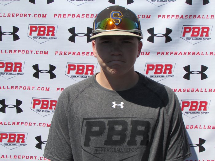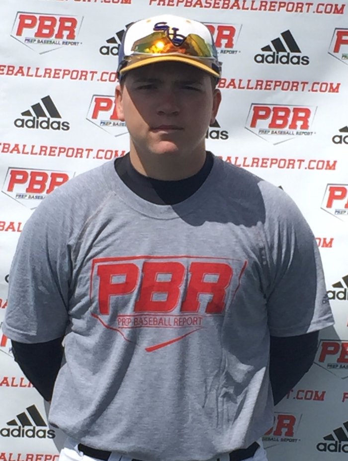 2/20/17- 5-foot-9, 175-pound catcher ran a 5.72 40 yard sprint. At the plate, slightly open stance, swivel hands trigger a smooth swing plane. All field approach, solid line drive contact during round of BP. Posted an exit velocity of 77 mph off a tee. Behind the plate threw to 2nd in the 2.1-2.18 range. Consistently around the bag. Square stance, low target, good sway & lateral movement, sound blocker, quick movement. Above average receiver for his age.