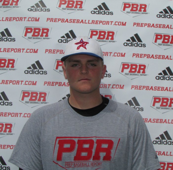 8/13/17- 6-foot-1, 225 pound two way player ran a 7.52 40 yard sprint. Ranked #15 in the Nebraska 2019 class. Square stance, leg kick trigger, aggressive line drive swing plane, shows power to pull side. Posted an 89 mph exit velocity off a tee. Corner actions in the infield, feet work through the ball in sync with hands, mid ¾ arm slot that topped out at 81 mph across the infield. On the mound, ran his fastball up to 84 mph a mid ¾ arm slot. Repeats well, gets off his backside with athletic finish, arm is short on the backside and long out-front. Effort in delivery. Tilt on 11/5 shaped breaking ball with depth.