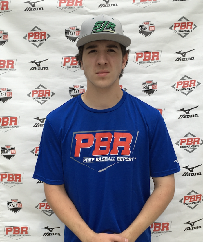 6-foot-1, 185-pound athletic frame. Clocked a time of 7.71 in the 60-yard dash. Began in a balanced open stance with a controlled load, then used a controlled stride before his swing. Bat speed was raw, had upward swing plane and high finish. Line drive approach. Knuckles had an exit velocity of 89 mph, showing his ability to drive the ball with power. From the outfield, he displayed a position velocity of 82 mph; had soft hands, a quick exchange and athletic footwork. Showed a loose arm action and a high ¾ slot with consistent accuracy to the base.