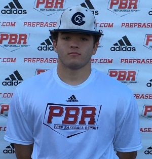 5-foot-10, 195-pound proportional frame. At the plate, the right-handed hitter's 90 mph exit velocity showed his ability to drive the ball with power. Started in an open stance with a smooth load, then used a leg kick to start his swing. Had quick bat speed, short swing plane and level finish. Through the round he found a few barrels with loud contact. While catching, recorded pop times of 2.01-2.25, throw downs to second were maxed at 77 mph; had consistent footwork, sure hands and a quick exchange. Had athletic setup. Showed consistent accuracy to the bag with a short arm action. In the 60-yard dash, he clocked a time of 7.62.