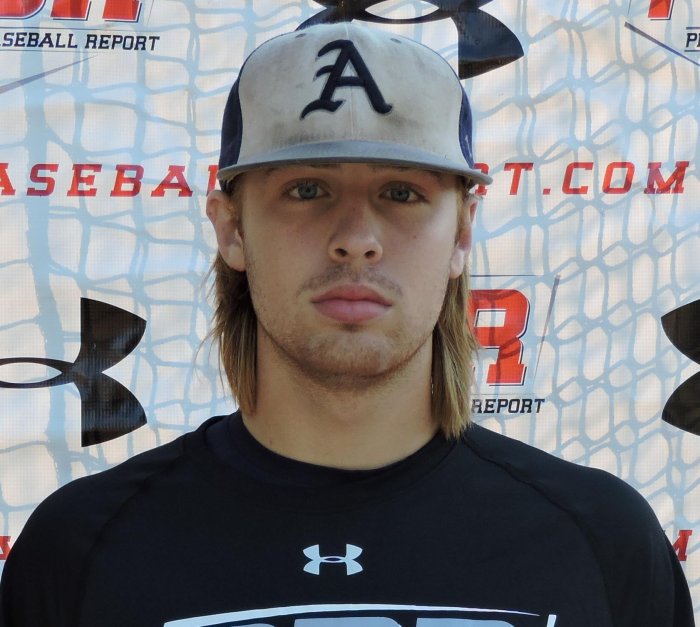 9/19/15 – I’ve seen a bunch of Sayles this summer and it is clear that he has a very nice left-handed stroke. His bat path plays and he has good bat speed as well. He hits from a tall stance and has a toe tap into stride for timing. He has the ability to hit fastballs, particularly when they are middle-in. He has fine catch and throw tools and is consistently on the bag around a 2.00-2.10 down to second in-game. He has shown the ability to receive with some high quality arms on the mound and he has a presence about him that is necessary of a catcher. He will be a solid get for anybody.
