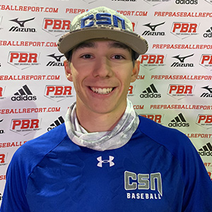 Fellows, who committed to Oregon the day after the event, shined in all phases, and looked the part of a true shortstop at the next level. At 6-foot-2, 190-pounds he has some lean, defined strength throughout a wiry-athletic frame that will likely continue to add, and provides for fluid actions both defensively and offensively. At the plate, the right-handed hitter took multiple mature rounds, spraying loud contact to all fields with minimal effort. Starting open with the hands held high, he squares with a short stride that allows free separation down and back before working directly to the ball with a slight uphill path. There is some quickness to the hands with minor collapsing of the back side, and Fellows showed some intent to work to the opposite field throughout. The exit velocities were eye-opening as he averaged 97.41 mph per Trackman, and was as high as 105.63 mph while hardly breaking a sweat. His hard hit percentage (91.7%) also stood out as he exhibited quality barrel accuracy. With the wind whipping on a cool evening, Fellows closed out his workout by demonstrating his clean, confident hands at shortstop. He bounced around with crisp footwork, and took no issue with any tough hops that were sent his way, and made each play look routine with a quick release that still allowed his arm strength (88 mph across) to present itself. Though CSN did not run at the event, Fellows has shown off his speed in the past which will only help elevate his status as a prospect. He would likely have gotten multiple looks this spring from MLB Scouts, but with the arms that CSN is prepared to roll out, I would expect nearly every at-bat to be documented which should aid in his value come July 2021. (Hunt)
