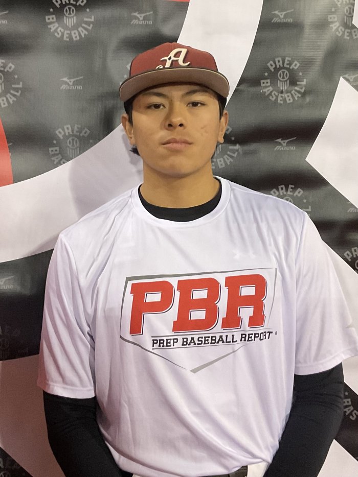 Hit: Currently the best part of his game. Squared, slightly widened stance. Hands start head high, loading into his shoulder with a slight arm bar. Uses a medium leg kick that gets down on time. Rhythmic, efficient hands to the ball. Transfers weight into front side at contact with a high one handed finish.