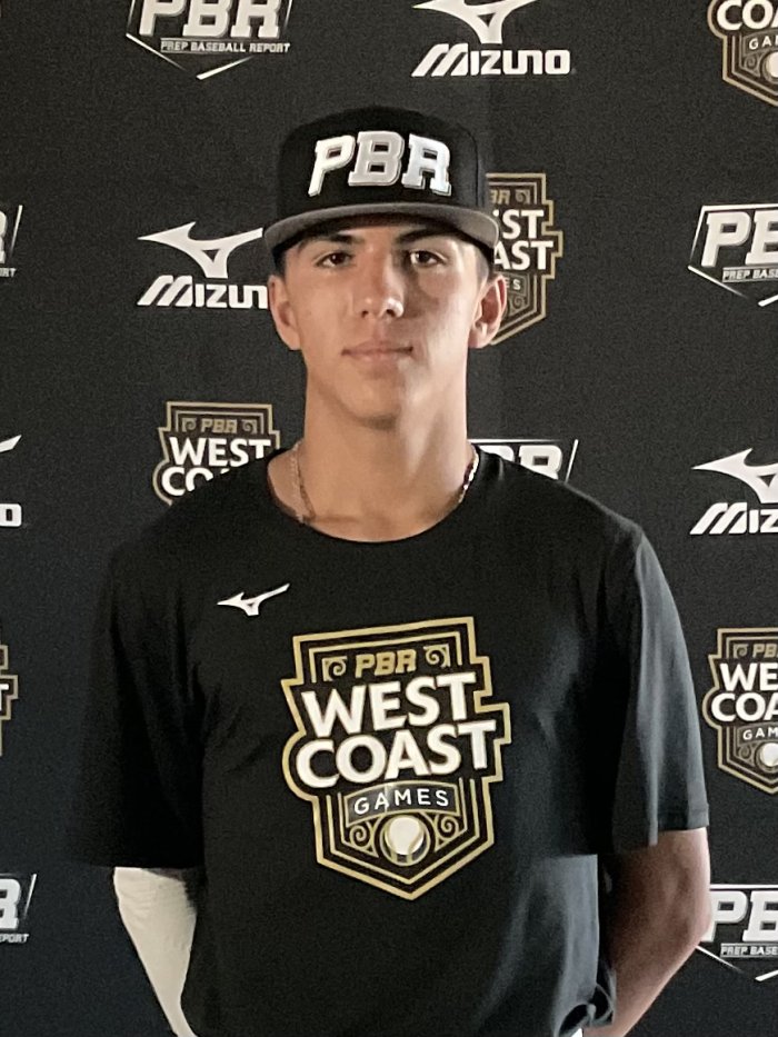 Hit: RHH. Tall, slightly open set up. Bat toggle timing mechanism. Knee to knee load with some weight shift forward at foot strike. Level bat path through the zone with some rotational tendencies. Produced line drives during his round with some power potential to the pull side projected down the road.