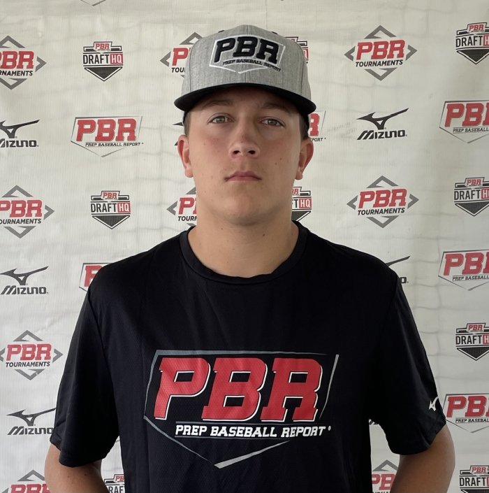 Offensively: LHH - Started from a wider, balanced stance outside shoulder-width as the hands operated with calm rhythm on the shoulder. Utilized a knee-knock stride to get directional, initiating the bat head through a smooth, slightly uphill path into the hitting zone. Medium intent during his round, consistently finding the barrel at the front of the plate to pull with feel for the top hand. Recorded a 40% fly ball rate with some loft in the approach, staying over the backside with good sequencing. Notched a T84 mph bat-exit velocity with doubles power available.
