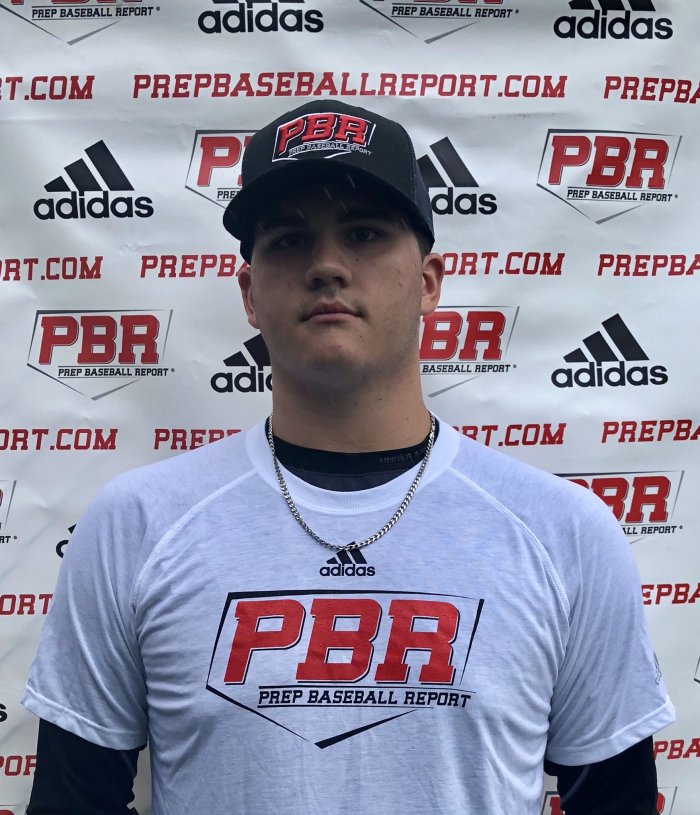 Monster frame at 6-foot-6 240 pounds; the 1B/RHP ran a 7.55 60. Offensively- Impressive rounds of batting practice with the wood; launched several balls well beyond the fence with minimal effort. Open stance with some flat bat, to barrel tip during his load. Stays behind the ball with an elevated approach; late one-hand finish. Defensively- Moves well around around the bag; feet get into position with a short infield arm action to start the front side of the double play. Plenty of arm for the position at 82 MPH across the diamond. Pitching- More of a secondary spot for Cook but has the stuff to get it done at the high school level sitting 84-85 MPH with a high 3/4 slot delivery. Fairly compact delivery for his frame; repeats his stride with some spin-off through his finish. Breaking ball checks in at 68-69 MPH.