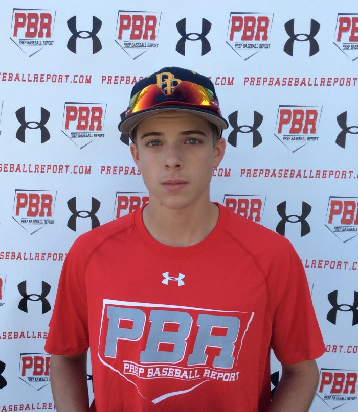 Baccello stands in at 5-foot-10, 150-pounds with a lean athletic frame. Ran a 7.28 – 60, improved from previous recorded time of 7.81 in August 2015. Offensively- Righty sets up square to the pitcher with his feet outside his shoulders in a wide stance. Slight knee bend with an upright torso while his hands are held in front of his back shoulder showing pre-pitch bat movement. On pitch his trigger is a quiet step forward while his hands move back slightly into the hitting position. Good lower body rotation getting his whole frame involved and getting the hips through. Quick hands to the zone with an upward lift bat path throughout into a high two handed finish. Covers the plate well with potential to drive the ball gap to gap. Recorded an exit velocity of 74 MPH. Defensively- In the outfield shows good footwork getting to the baseball. Fluid crow hop mechanics with a good outfield arm swing throwing down hill towards intended target. Quick transition from glove to throwing hand. In the infield shows good footwork getting in front of the ball with fluid fielding mechanics. Funnels quick and efficiently to his throwing hand and shows quick aggressive footwork prior to release. Recorded a positional arm velocity of 74 MPH.