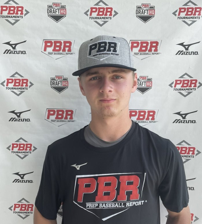 A lean athletic frame at 5-foot-8, 145 pounds. Ran a 7.70 in the 60 yard dash. Offensively- the right handed hitter stands in the box with feet shoulder width apart and loose hands. Takes a short stride towards the pitcher before entering the hitting zone. Short compact swing. Displayed hard consistent contact during batting practice. Gets good extension after contact and finishes with a one hand follow through. Top exit velocity was 74 MPH. Defensively- the infielder displayed an aggressive approach to the baseball. Stays under control when approaching the ball. Gets in a wide low base when fielidng the baseball. Smooth funnel action and quick release from a high ¾ arm slot. Strong arm which peaked at 81 MPH. Pitching- the right handed pitcher displayed a repeatable delivery and a projectable live arm. Works with tempo. Displayed good FB command which peaked at 79 MPH and ranged from 75-78 MPH. CB is tight at 62-64 MPH and feel for a Ch with late fade at 65-67 MPH. The 2023 graduate will be a must follow going forward.