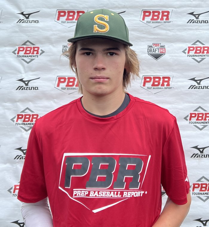 Pitching: Uses a center rubber setup while using an angled drop step. Mid chest leg drive with a slight lean over the belt. Has a moderate stride while landing slightly open. Moderate arm swing while showing some scap load; low 3/4 slot. Square to the plate with finish. FB: Peak velo of 78 MPH, while sitting 74-77 MPH; straight action. CB: 54-56 MPH; late action.