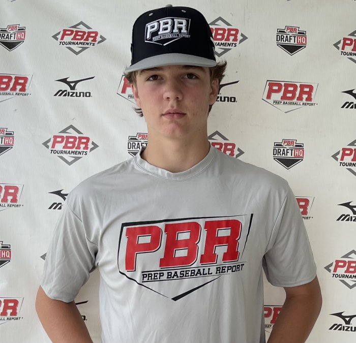 Pitching: Uses a glove side setup while using a side step. Mid chest leg drive with a slight lean over the belt. Has a moderate stride landing inline with the plate. Long arm swing while arm stays in line with 2B; standard 3/4 slot. Square to the plate with finish. FB: Peak velo of 84 MPH, while sitting 80-83 MPH; arm side run. CB: 70-74 MPH; late action. CH: 75-76 MPH; fading action.