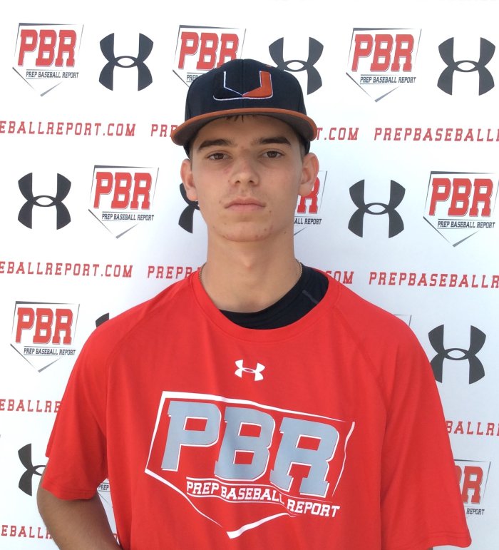 Hudson Valley Open (August 12, 2015) Pitching- Slight build at 6'0" 140lbs but with a live and loose arm that works from a low 3/4 slot. Ton of action from his fastball which sat 77-79 MPH but performed harder, creating awkward swings and jam shots. Slow development up to balance point through his rocker step. Features a glove tap at his peak position before speeding up the remaining delivery. Lands slight open with stride and front side but does not seem to effect release point. Recoils some with his delivery which could provide some unnecessary stress. Breaking ball falls into the slider family at 69-72 with some late tilt to it. Change up needs work at 73-75 but with that type of arm action and movement, it could be a go to pitch over the long term.