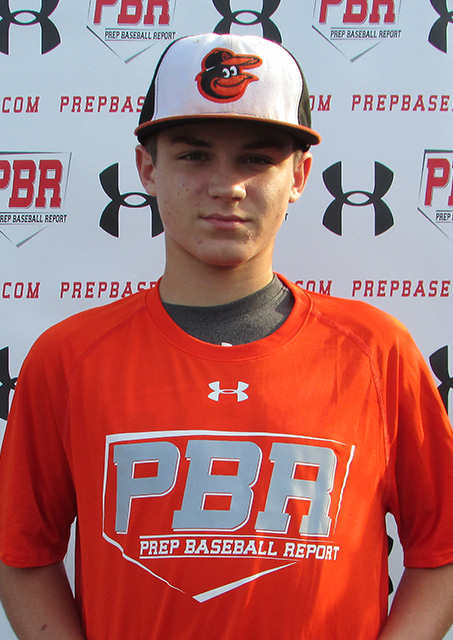Stands in an athletic 5-foot-7, 140-pounds with room for growth. Plus foot-speed for his age, evidenced by a 7.14 60-yd. dash. Offensively- He's an aggressive hitter with a good rhythmic approach. He starts tall with his feet shoulder width apart. He starts his weight back, with a high leg kick, and slight wrap on the pitch for timing. He aggressively puts the bat through the zone on a downward plane, then extends and finishes high. Creates tremendous backspin and carry. Exit Velo was 80 mph. Defensively- At SS he moves well from side to side, and gets to balls easily in the hole. His set up is low with his hands out front. Stays low to his shuffle and through his throws. Throws from a low-mid arm slot. Energetic young player, look forward to seeing him again.