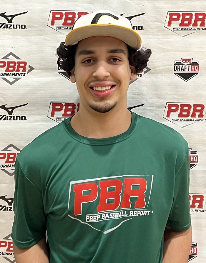 Offensively: RHH. Even setup, with feet just outside his shoulders; bat positioned at a 45 degree angle. Short take back with the hands with a slight leg-kick for timing. Stays behind the ball while showing a strong lower half. Showed a moderate swing path with a late one hand finish. More flyballs than line drives and groundballs with a peak exit velocity of 87 MPH via Trackman.
