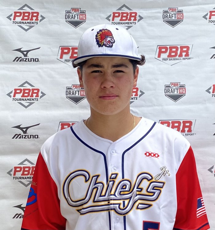 Defensively: Starts with a balanced setup; uses prep hop while showing active feet. Hands are out in front with a clean transfer. Long arm swing from a high 3/4 arm slot. OF - 81 MPH. High Intent Mover