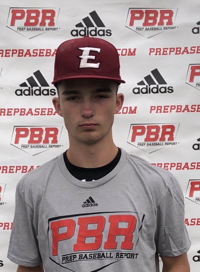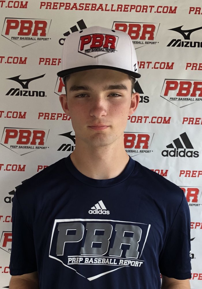 A lean 5-foot-10, 155 pounds SS. Offensively- Tall stance with hands close to the body. Uses a small leg lift to stride toward the pitcher when timing. Displayed quick hands with a short compact swing. Balanced throughout the swing and finished with an upright finish. Sprayed the ball all over the field during the hitting portion. Had an exit velocity of 79 MPH. Defensively- Active footwork and moves will laterally around the infield. Has soft hands and stays square when fielding the ball. Will use a quick glove tap for timing when throwing across the infield. Has a low ¾ arm slot and was 76 MPH across the infield. The 2020 SS is a fast twitch player and that plays with a bounce in his step. Projects as MIF at the college level.
