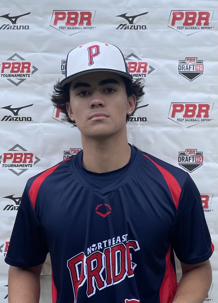 Pitching: Uses a center rubber setup while using a side step. Mid chest leg drive with a slight coil away from the plate. Has a long stride landing inline with the plate. Moderate arm swing while arm stays in line with 2B; standard 3/4 slot. Spins off 1B side with finish. FB: Peak velo of 75 MPH, while sitting 70-74 MPH; arm side run. CB: 59-62 MPH; slurve like action.