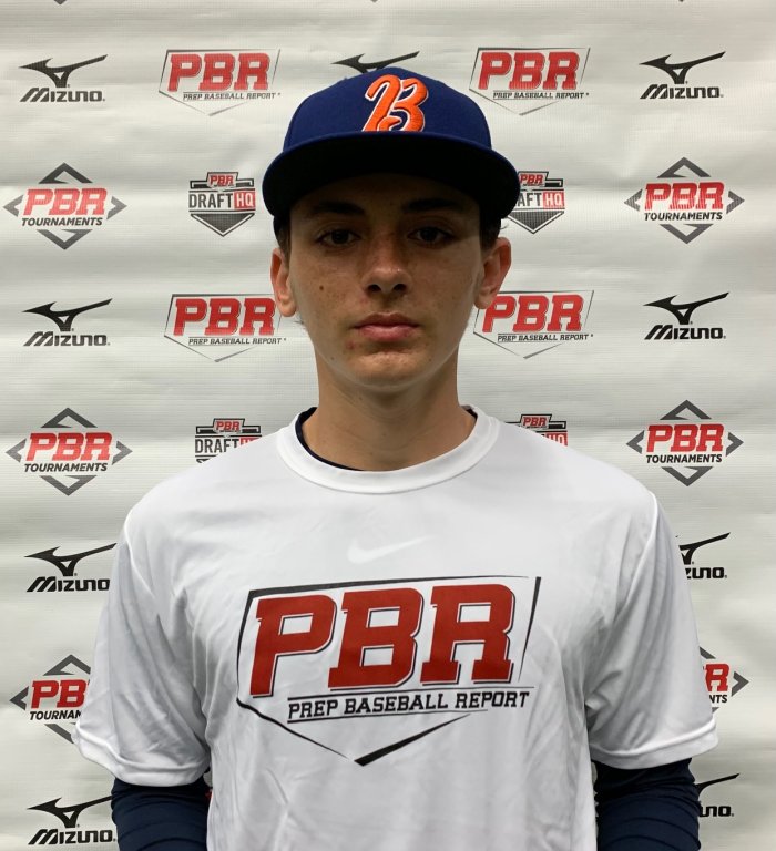 Offensively: LHH - Wide, even stance with a slight bend in the knees as the hands operated with some barrel wiggle off the shoulder. Utilized a barrel tip as the backside elbow worked subtly higher, initiating the bat head through a tilted, whippy slightly uphill path into the hitting zone. Produced lots of pull-side line drives during batting practice (44% line drive rate via Trackman) staying in the legs and flashing ability to hit for some average down the road. Adjustable approach that could spray contact to the middle of the field when pitched out over the plate. Found success up to a T92 mph bat-exit velocity at his peak and posted a solid 336 foot batted ball distance (extra-base hit power).