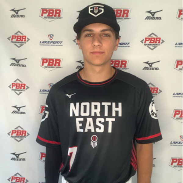 Offensively: RHH. Even setup, with feet just outside his shoulders; has a pre-pitch bat waggle. Drops hands on the way back with a slight leg-kick for timing. Stays behind the ball while showing a strong lower half. Showed a direct swing path with a two handed finish. More line drives than flyballs and groundballs with a peak exit velocity of 90 MPH via Trackman. Consistent hard hit balls in the middle of the field with some pull side power.