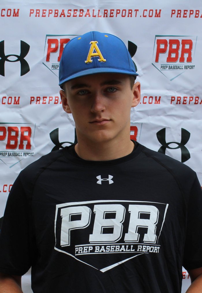 6-foot, 170-pound thin, projectable body frame. Pitching- On the mound he uses simple, repeatable mechanics in a delivery that doesn’t require much effort. He lands slightly closed at foot strike, finishing with his momentum carrying towards home plate landing in a balanced position. He throws with a clean arm action, using average arm speed coming from a ¾ slot. His fastball was between 77-80 mph. His curveball showed inconsistent signs of sharpness with 11/5 tilt that should project into a good pitch, between 62-64 mph.