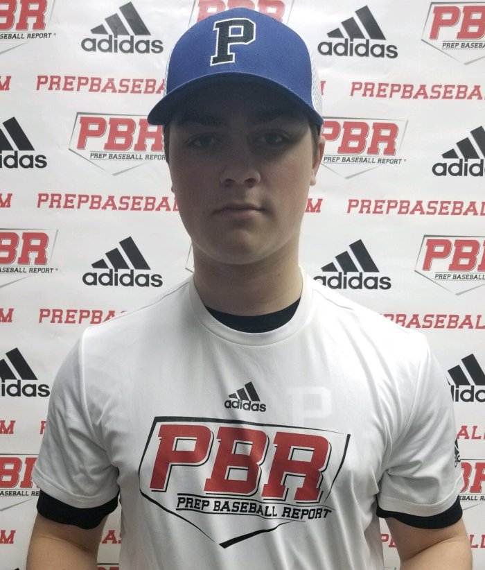 5-foot-11, 182-pound, average athletic frame, already fill out, strength throughout. A right-handed hitter, balanced at the plate, feet are even at shoulder height, hands are relaxed and look to be comfortable. For timing uses a higher, smooth leg kick, gaining ground, getting foot down on time. The swing is short to contact, level through the zone, finishing higher, creating lift to it. Solid, advanced approach from gap to gap, driving the baseball with authority, had a tee exit velocity of 94 mph. Runs well at 4.48 down the line. The in game swings were very good, collecting multiple hits. Defensively, threw 77 mph across the diamond, shows to have enough strength to stick on left side. Works low and out front, smooth clean controlled double play starts. Look for him to play at a high level, love game and feel.