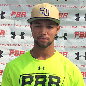 A right-handed hitter that starts in an athletic setup. Swing is full of fluid, well timed movements. Bat speed and strength both stand out. Ball jumps off his bat and he creates consistent backspin. His flat path and barrel awareness allow him to drive the ball with authority to both sides of the field. In the outfield he plays with confidence and athleticism. Plays through the ball fluidly, maintaining momentum into his throws. Threw with carry and accuracy.