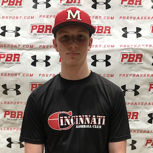 6-foot-2, 175-pound strong, projectable frame. On the mound the righty uses simple, repeatable mechanics with a delivery that requires minimal effort. He throws with a long arm action, from a high-¾ slot with his fastball sitting 71-74 mph. His curveball had a downward, gradual break at 64-66 mph. He threw his changeup using near fastball arm speed between 67-68 mph. At the plate he displayed very fluid mechanics and good rhythm to consistently square up balls in batting practice. Using a slightly uphill bat path he reached a top exit velocity of 80 mph. From the outfield he used smooth footwork and was able to field the ball correctly, on his glove side foot. Needs to quicken up his transfer but was able to carry momentum into his throws. From a high-3/4 slot with loose arm action he showed 77 mph arm strength to home plate. Ran a 7.81 60-yard dash.