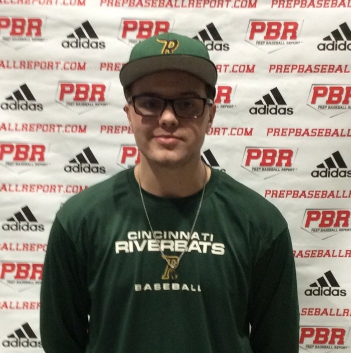 6-foot-2, 210-pound. Right handed hitting first baseman. Wide base set up, rocks hips into load with minimal stride. Bat path works downhill consistently finding the barrel, shows pull side power potential. Registered an exit velocity of 83 mph. Defensively at firstbase shows average hands and solid footwork, throws topped at 73 mph across the diamond. Recorded a 5.0 home to first time.