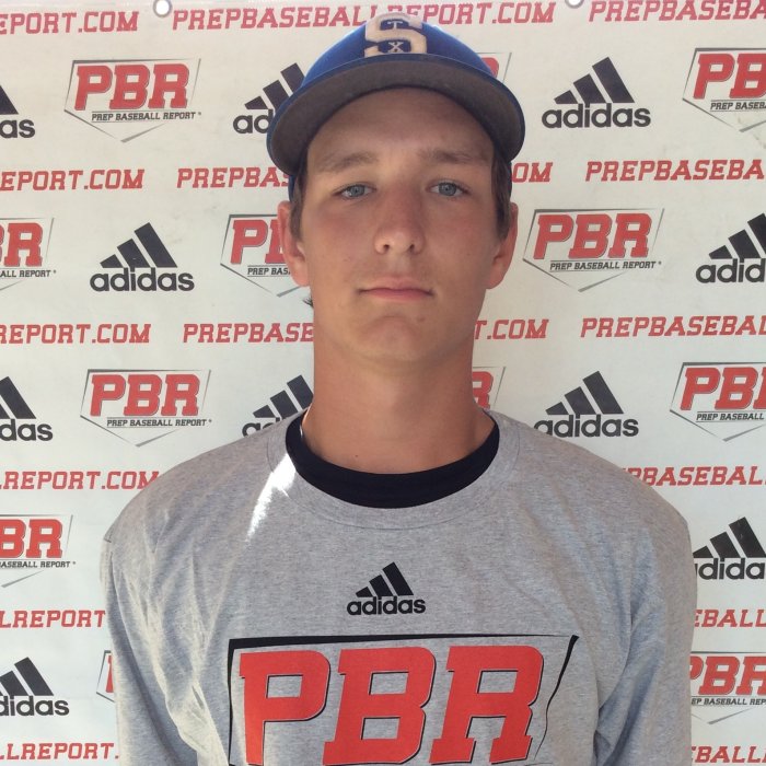 A righty bat that starts in a balanced stance. Uses a slight back load with hands during double tap timing mechanism. Nice, compact stroke on a slightly downhill path. Strong kid with quick hands. Ball comes off well, showing gap abilities in BP. Middle of the lineup type. Liked what I saw behind the dish catch and throw wise. Stands up and throws it with confidence to second base. In game abilities are on par for class.