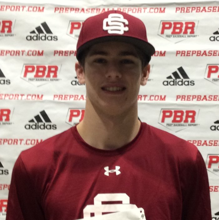6-foot-1, 145-pound thin, projectable frame. Starts in a wider setup and uses a no stride approach with a toe turn to initiate his lower half. Hands move back prior to getting through the zone on a level path. Better to his pull side. Registered an exit velocity of 76 mph and ran a 5.13 from home to first. In the infield he has some fluidity to his footwork and confidence to his glove. Would like to see him play lower.