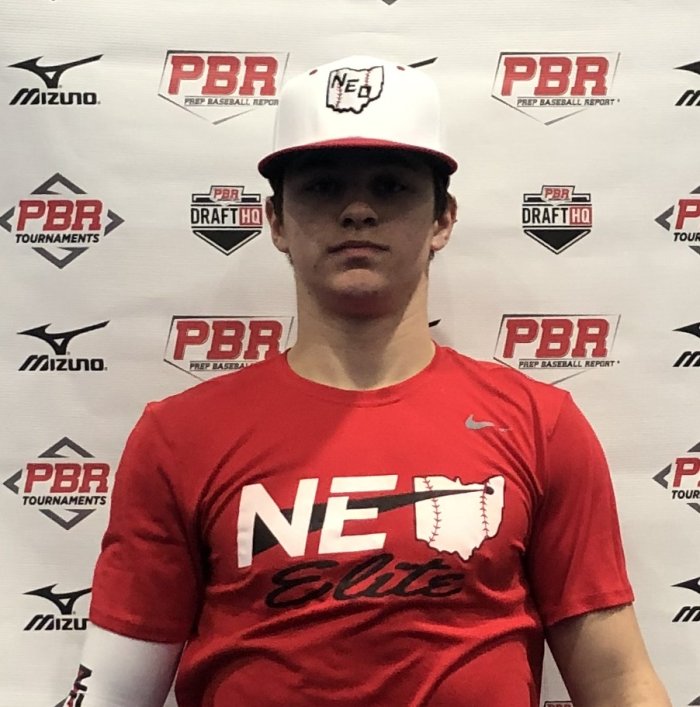 JT Popick: 2B/OF, (2022) Louisville, OH. 6-foot, 165-pound athletic frame. In the box, the right-handed hitter had a max exit velocity of 91 mph. Began in a balanced stance with a controlled load, then used a small leg kick. Bat speed was quick, used an upward swing plane and high finish. Solid in the infield, recorded a position velocity of 83 mph; had a clean exchange, soft hands, and rhythmic footwork. Solid in the outfield, his best throws to the infield topped out at 86 mph; shows a natural exchange, soft hands, and consistent feet. Laterally, movements were athletic and fielded the ball out front. Used a quick arm action and a high ¾ slot. Clocked a time of 7.13 in the 60-yard dash.