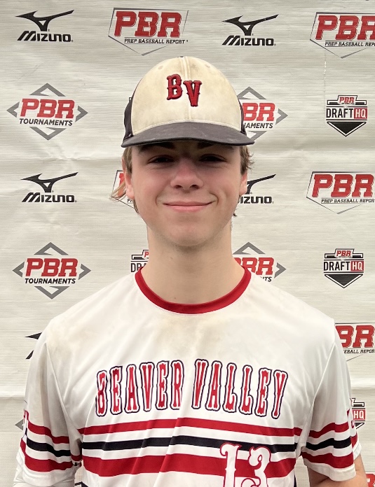 OF, (2025) Austintown Fitch, OH. 6-foot, 163-pound. At the plate, the left-handed hitter had an exit velocity of 84 mph. (62.1 mph bat speed average). (18.9 mph hand speed average). Begins in a balanced quiet stance with a controlled load, then uses a small leg kick. Has a short simple swing plane, quick bat speed and good extension on his finish. Solid from the outfield, his best throws to the bases were registered at 77 mph; has sure hands, a natural exchange, and consistent feet. Movements laterally were athletic and he fields the ball out front. Showed a high ¾ slot with a quick arm action. During the event, clocked a 60 time of 7.52.