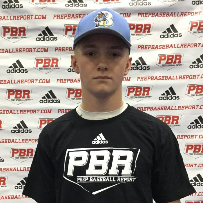 On the hill the right-hander starts with a slower tempo prior to picking the pace up at balance point. Delivery has some effort and he works through a near over the top slot. Fastball works downhill, cruising at 78-80 mph. Can generate arm side action on the fastball. Leading his secondary repertoire was his 11/5 shaped breaking ball. The pitch was sharp, displaying developing depth at 66-70 mph. Also offers a changeup, near fastball arm speed at 70-71 mph. Changeup is a well above average offering. A right-handed hitter that starts in a wider setup. Load is simple and repeatable. Uses a short stride for timing while taking hands slightly back to launch. Strength is apparent at contact with above average bat speed through the zone. Tends to get to front side before swing decision a times. Natural tools are well above average for class. Potential to grow into a run producer role. In the infield he gets out of his stance well, showing a quick first step. Does a nice job of creating angles prior to fielding. Hands work well when he fields on the left side of his body but can get around the ball early at times.