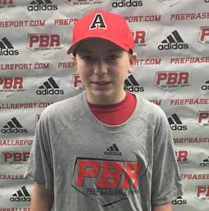 A right-handed hitter at the plate that starts in a tall stance. Uses a leg kick for timing while keeping hands simple throughout load. Slightly downhill path with more present strength than speed to hands. Worked through a middle-away approach in BP with backspin ability. Middle of the lineup potential. Behind the dish he creates solid direction with feet during transfer. Actions are fluid and exchange is easy. Arm is on par for class strength wise, showing present accuracy.