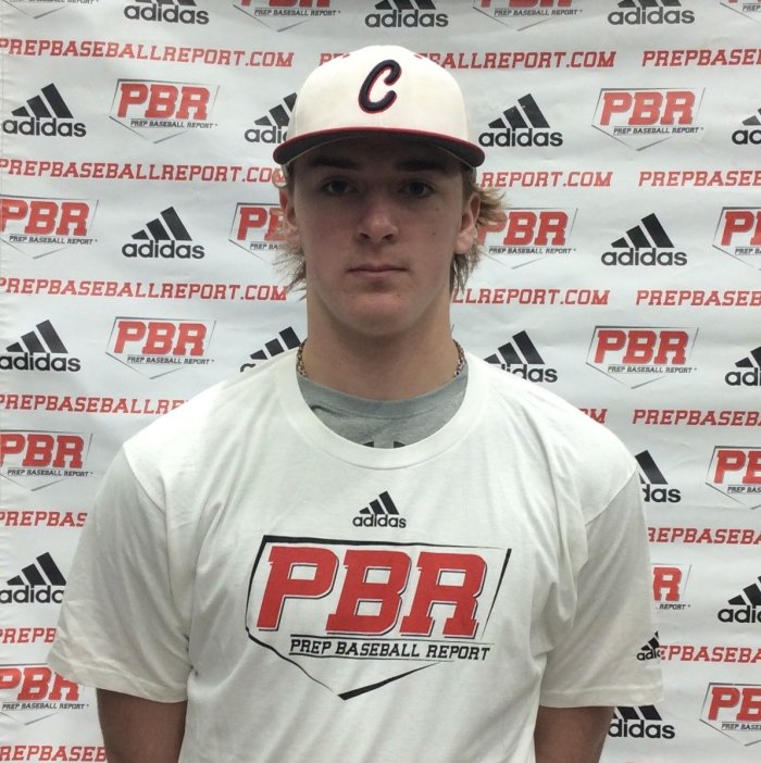 A 6-foot-3, 210-pound prospect. At the plate he hits from the right-side, starting with weight on his back leg. Launches with some tilt. Load is simple and fluid. Path has some loft. Bat speed is an above average tool with his strength standing out as top tool. Present pull side pop with more to come. Middle of the lineup potential. Ideal frame for the first base position. Moves well around the bag for frame. Ball skills are adequate for the spot. On the mound, the right-handed pitching prospect work with a smooth leg lift into his lower half drive. Has unique arm action with a slight hitch in his delivery. The different delivery allows his fastball to sneak up on hitters. Works from a strong back hip load creating energy into this downhill drive. Fastball shows slight run and is located well. The strike thrower allows himself to get ahead in the count where he works in his secondary breaking pitch. The spinner has solid side-to-side break creating difficulty for right-handed hitter to track. More velocity to come from the growing prospect.