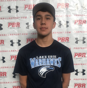 Actions are fluid and athletic on the mound. Transitions smoothly through his leg lift into his drop and drive load. Arm is compact, working through an over the top slot. Showed the ability to run and sink his 76-79 mph fastball. Complements his fastball with a near 12/6 shaped breaking ball. Puts good spin on the offering giving it depth with developing sharpness at 68-71 mph. A right-handed hitter that starts in a wider setup. Goes with a leg kick timing trigger while taking hands slightly back to launch. Path is slightly downhill with some twitch in there. Strength is developing. A contact type guy who line drive abilities to both gaps.
