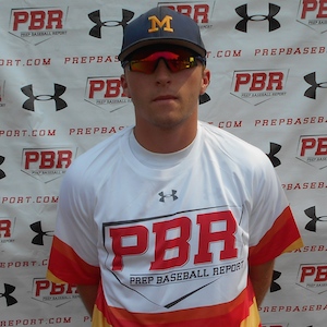 A very talented two-way prospect with a 5-foot-10, 185-pound athletic frame. A talented two-way prospect that was recently coming off a knee injury. By his build when he showed up it was obvious he took advantage of the time off in the weight room. The added strength showed in batting practice as the ball jumped off his bat. He has good rhythm to his bat tip/knee pitch load that allowed him to consistently be on time. Has a slightly downhill path that limits power at times. Has power potential in there once he flattens out his bat path. Registered an exit velocity of 91 mph and ran a 6.94 60-yard dash. Graded out as the best arm at the showcase. 90 mph velocity from the outfield. He puts excellent backspin on the ball is tight all the way to the destination. Snap and release all above average. Only area of improvement would be cleaning up his routes to the ball. On the mound he has a smooth tempo to a delivery that requires little effort. Above average armspeed with short arm action. Fastball sat 86-87 mph with run at times. Showed off one of the better breaking ball of the day as it dropped off the table before getting through the zone at 67-71 mph. Also mixed in a 79-80 mph changeup. Would expect him to continue to do both at the next level with slightly more upside as a position player.
