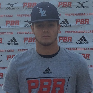 A fluid swinger from the right side. Goes with a double tap for timing as barrel flows into a strong launch position. Path is level to slightly downhill with above average strength and speed to hands for class. Ball comes off well, working mostly the middle of the field. Produced consistent line drives with enough authority to find the gaps. Behind the dish he starts in a lower crouch. Gets out of his stance aggressively, gaining positive ground to second base. Arm actions is slinging. Exchange abilities are above average at this stage.