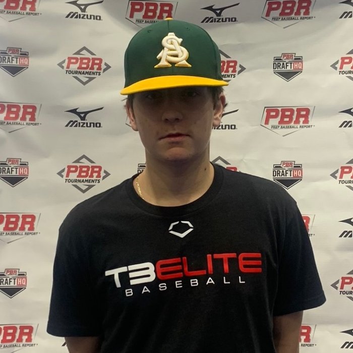 RHP/3B, (2023) Amherst Steele, OH. 5-foot-11, 180-pound. Solid on the mound, had a high ¾ arm angle and a loose arm action with consistent arm speed. Drop-and-drive type pitcher who shows some effort. He has downhill shoulders and a strong balance point. Lands open with recoil finish. Produced a fastball that came in at 81-83 mph. Had slight running action. (Max spin 2069; Avg 1983). Shows slurvey action on his 11/5 curveball (71-72). (Max spin 2160; Avg 2057).