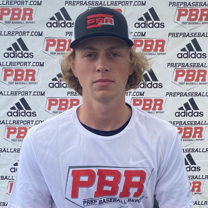 RHP/3B, (2023) Hilliard Darby, OH. 6-foot-2, 205-pound. Solid on the mound, showing consistent arm speed he used a loose arm action with low ¾ arm angle. Drop-and-drive type pitcher. During his delivery balance point is tall with in line shoulders. Lands open with recoil finish. Produced a fastball that came in at 80-83 mph. Showed running action. (Max spin 2046; Avg 1904). Threw a 11/5 curveball (73-74) with some sweeping action. (Max spin 1899; Avg 1865). Throws a 10/4 slider (73-75) that has tight action. (Max spin 2057; Avg 1961).