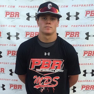 5-foot-11, 180-pound athletic frame. Has advanced strength and batspeed for his age as he showed by registering an exit velocity of 96 mph. He starts closed and uses a leg kick to start his lower half before his aggressive stride forward. Tends to close off his hips with his stride causing him to be tardy at times and upper half dominate. A more efficient lower half will help his strength and batspeed go to work in game action. Batting practice is impressive when he is on time. Ran a 7.6 60-yard dash. Projects as a corner outfielder. Potential first baseman as his bat is his best tool. His arm strength is average right now and still developing feel for the position. Top velocity of 76 mph on his throws. Behind the dish, he throws from a lower slot. Creates accuracy issues. Arm strength needs to improve as he reached a top velocity of 73 mph. Pop times ranged from 2.02-2.12.