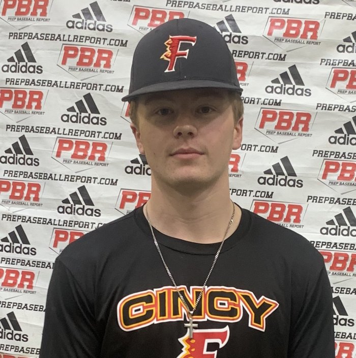Sam Boardwine: LHP/OF, (2022) Miamisburg, OH. 5-foot-10, 165-pound athletic frame. During batting practice, Boardwine had an exit velocity of 88 mph. Began in a balanced stance with a quick controlled load, then used a small leg kick. Bat speed is average and uses a flat swing plane. Athletic in the outfield, his best throws to the infield topped out at 83 mph; had athletic developing footwork, a developing exchange, and sure hands. Movements laterally were athletic and he fields the ball one hand. On the mound, showing good arm speed he had a ¾ arm angle and a loose arm action. Drop-and-drive type pitcher who shows easy effort. Showed an athletic balance point. Produced a fastball that came in at 77-81 mph; had running action and arm side command. Had gradual action on his 1/7 curveball (62-65). Showed arm side control and fading action on his changeup (70-72).