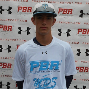 A two way prospect with a 6-foot-2, 175-pound strong, athletic frame. Brings well above average athleticism to the mound with a smooth delivery that requires minimal effort. Has clean arm action with above average armspeed and some looseness. Fastball came in anywhere from 83-86 mph and we have seen him up to 88 mph as recent as this spring. Has tight spin on his sharp 12/6 curveball that hitters were obviously having trouble picking up. Very good pitch. Also displayed a changeup with fastball armspeed at 77-78 mph. At the plate he generates efficient energy into contact through an aggressive stride. Keeps rhythm in his hands before firing the bat through the zone on a level path. Above average batspeed at this stage. Stays fluid throughout his swing. Showed the ability to drive the ball in the gaps in batting practice. Reached a top exit velocity of 87 mph and ran a 7.31 60-yard dash. Athletic actions in the infield with impressive 87 mph arm strength across the diamond. Fringy lateral mobility for the shortstop position. Profiles more as a third baseman at the next level.
