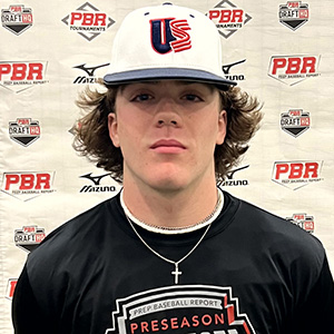 Defense: 2.06-2.15 pop times. Receives the ball one knee in the dirt and strong posture with feel for pitch framing. Quick footwork out of the crouch with quick exchanges out of the glove. Throws show strong carry and accuracy to the bag. Strong blocking technique with strong recovery skills. In the outfield attacks the ball with smooth rhythm and shorter strides. Fields the ball on the outside of the glove side leg with clean exchanges out of the glove. Shuffle crow hop technique with strong momentum headed towards the target.