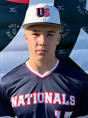 Hit: RHH. Tall slightly open setup with a balanced base, weight starting on back side, and active hands. Uses a high leg lift trigger gaining ground forward and working back to even. Long flat path through the zone, mostly barrels, present power. 68.8 mph bat speed with 17 G's of rotational acceleration.