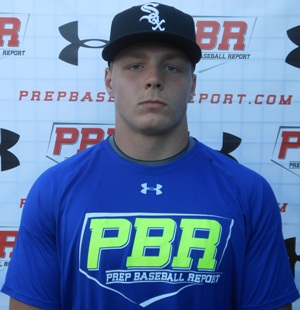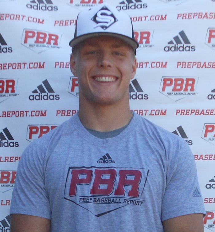 A 6-foot-2 , 215-pound muscular, lean, athletic frame. Offensively, right-handed hitter, middle-pull approach, consistently hit balls in the air, created some backspin. Wide athletic stance, some rhythm, short, slightly closed stride, late heal plant, late arm bar, strong hands, aggressive swings, 79 mph exit velo. Defensively, good receiver, consistent feet and exchange, over the top arm action, some stiffness, 76 mph to second, 1.94-2.01 showcase pops, very accurate arm. Ran a 7.31 60. Had two walks, two strikeouts, and deep fly to left on the day.